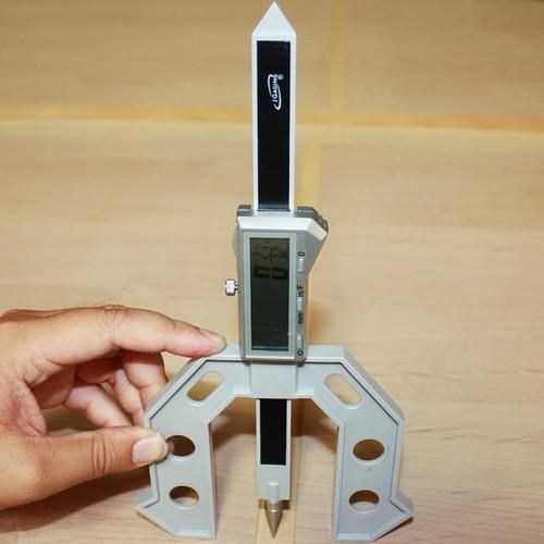 - It is a metal rule with a Super Large LCD display, housed in a heavy-duty polycarbonate frame which allows it to stand freely. The frame allows the tool to be set at 70, 80 or 90 degrees as well as horizontally for accurate measuring. It features buttons for on/off as well as zero set functions, and it easily switches readings from inches to metric to fractions at a touch. Two hardened steel measuring anvils (flat and point) are included.