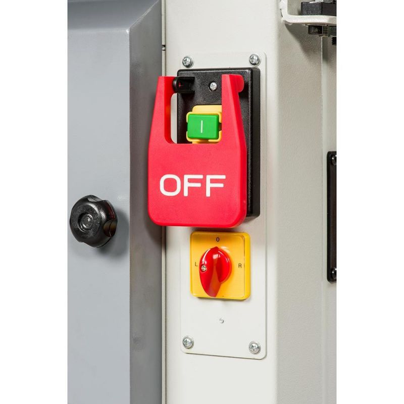 - The spindle hood is cast alloy with long, fully adjustable finger style fences. It, comprehensive work hold-downs and a 100mm dust outlet. A second 100mm dust outlet is located on the stand directly below the cutter block. With the two connected to a suitable extractor waste removal is highly efficient. The machine is supplied with a simple sliding table with a mitre fence and work clamp as standard.