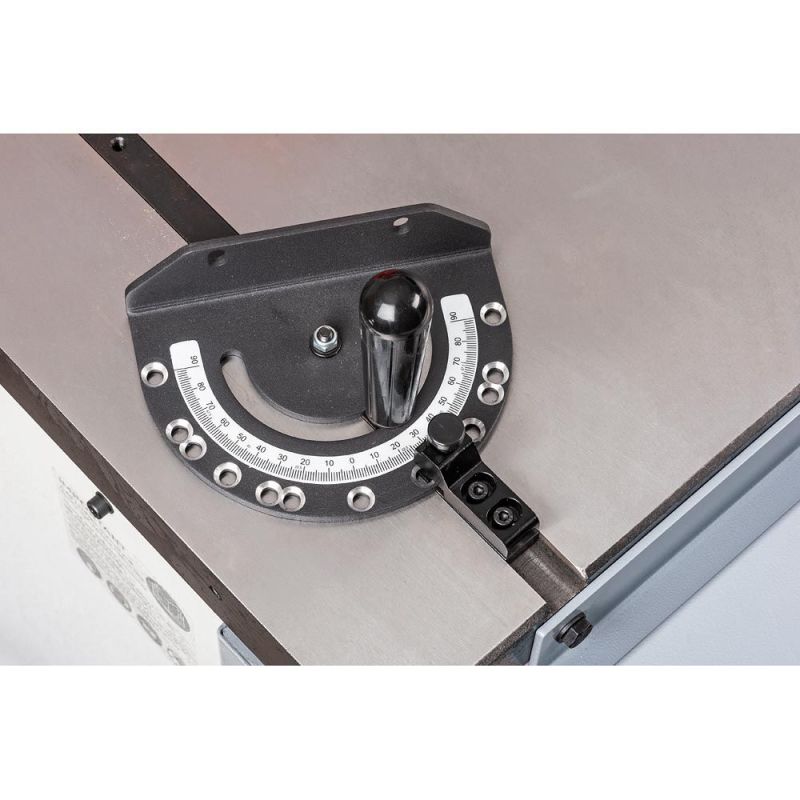 - Twin mitre fence table slots: Twin T-slot mitre fence slots on both sides of the blade, ideal for jig use. Also supplied with a premium mitre gauge with useful pre-set angle stops.