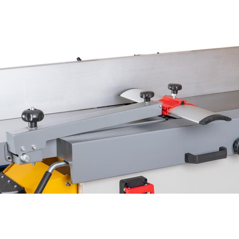 • Large Solid Fence: This handy feature enables timber to be easily squared, saving you time and effort as you work. When surface planing, the long rigid alloy fence supports your work securely. The fence is easily adjustable with stops for 90° and 45°.