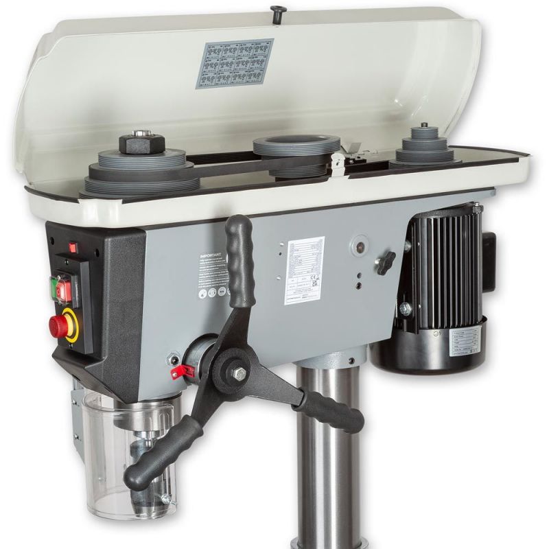 - Enhanced Safety System: The electronically interlocked chuck guard and integrated belt cover safety switch prevent the machine from being accidentally turned on or running with the cover open, ensuring maximum safety.