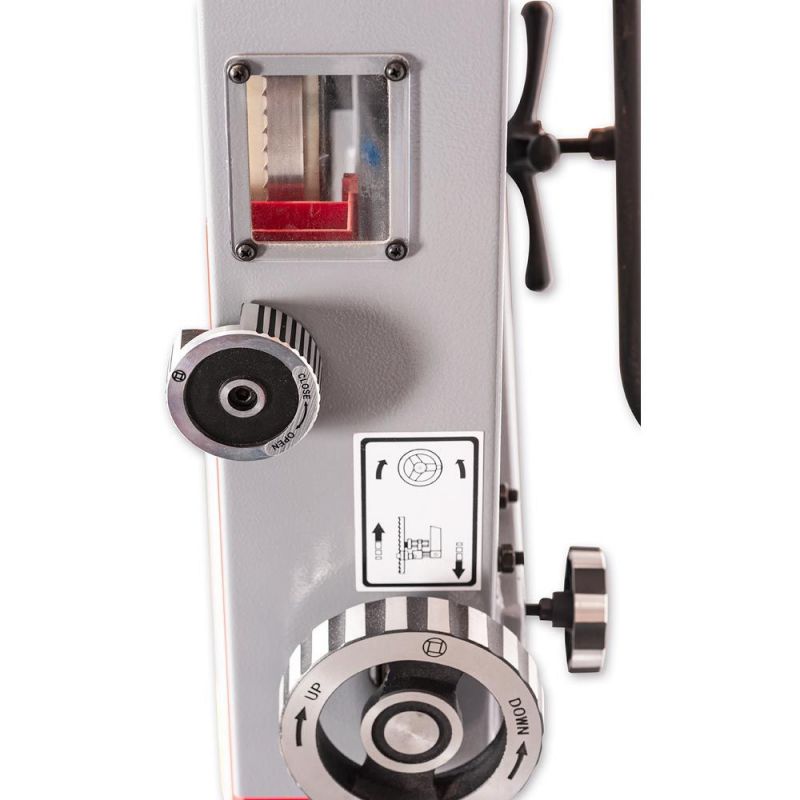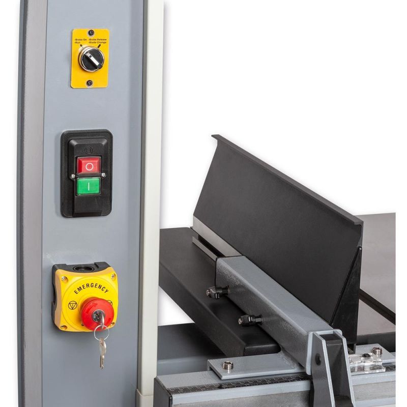 - You can rest assured that this machine meets all safety requirements: it features a key switch for extra safety when away from the machine, as well as an emergency stop switch. Dual dust extraction ports provide efficient methods of dust extraction to keep your workshop clean and dust free.