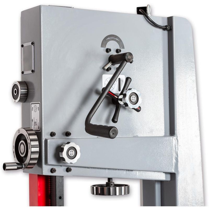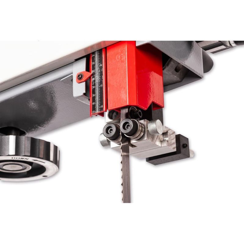 Rack & pinion upper guide adjustment: Easily adjust the upper blade guide with the rack and pinion rise and fall. There is also a tension release lever for straightforward blade changes.