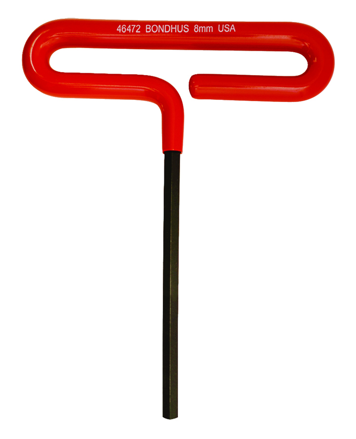 BONDHUS 8mm T-Handle Cushion Grip Hex Driver - L6", 46472