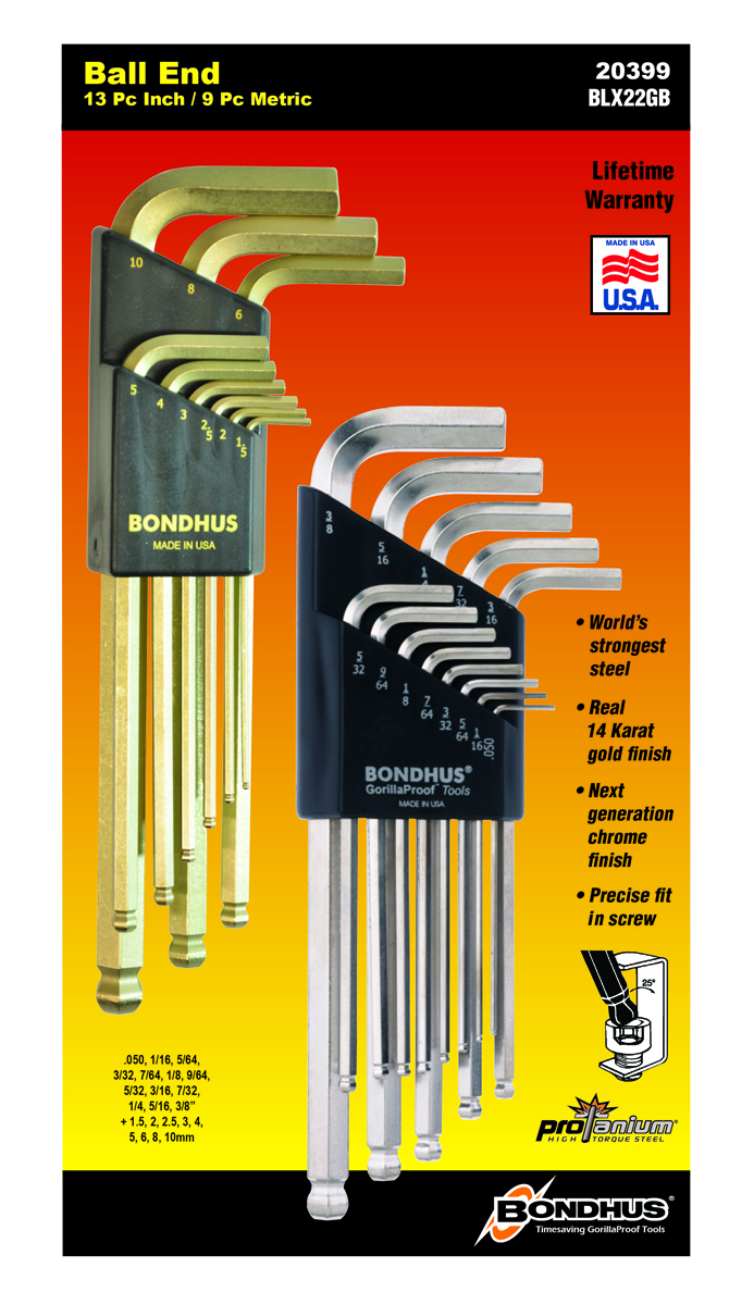 - BONDHUS BLX22GB Double Pack BallEnd Hex Key Set BLX9g + BLX13B, 20399 -