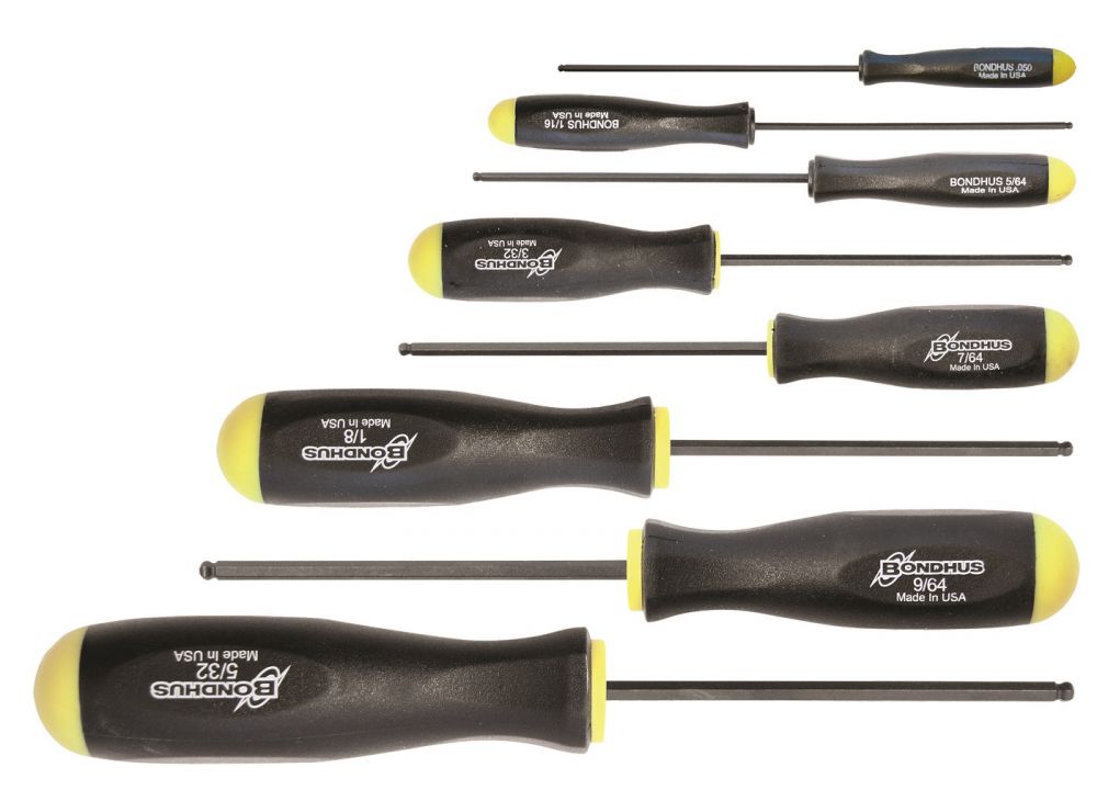 - BONDHUS BSX8S Ball Driver Hex Screwdriver 8pcs Imperial Set 0.050"- 5/32", 10632 -