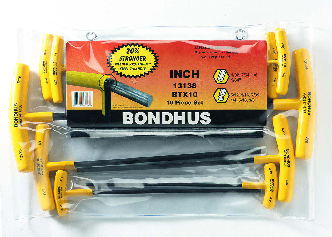 • BONDHUS BTX10 T-Handle Ball Driver Hex 10pcs Imperial Set 3/32"-3/8", 13138 -