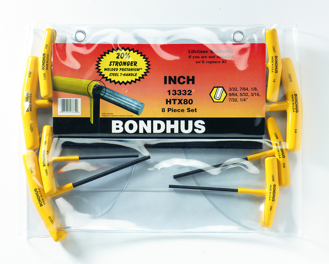 • BONDHUS HTX80 T-Handle Hex Driver 8pcs Imperial Set 3/32"-1/4", 13332 -