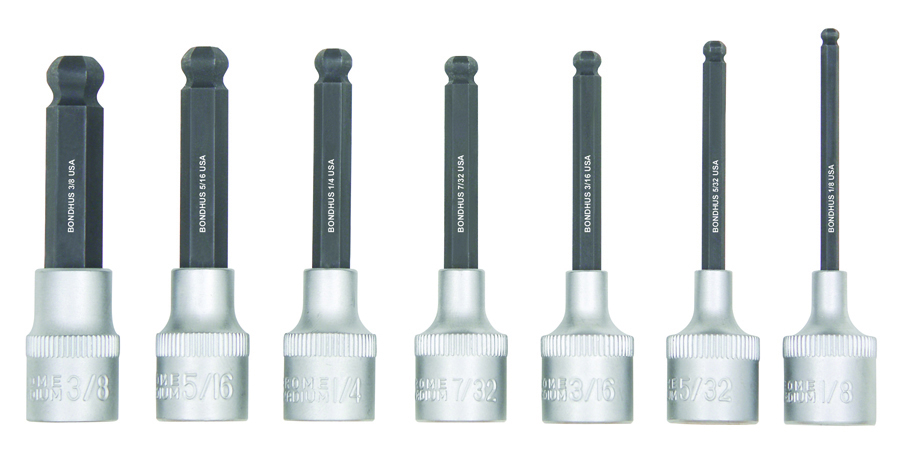 BONDHUS PHBX7/S-2 ProHold Ball End InHex Sockets + Bits Set - 7 pcs - 1/8"-3/8"