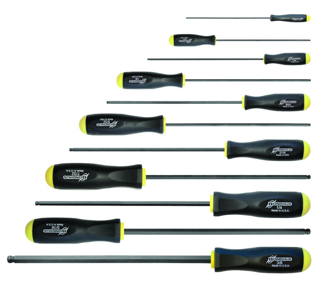 BONDHUS ProGuard Ball End Driver Hex Screwdriver Sets - Imperial and Metric Sizes