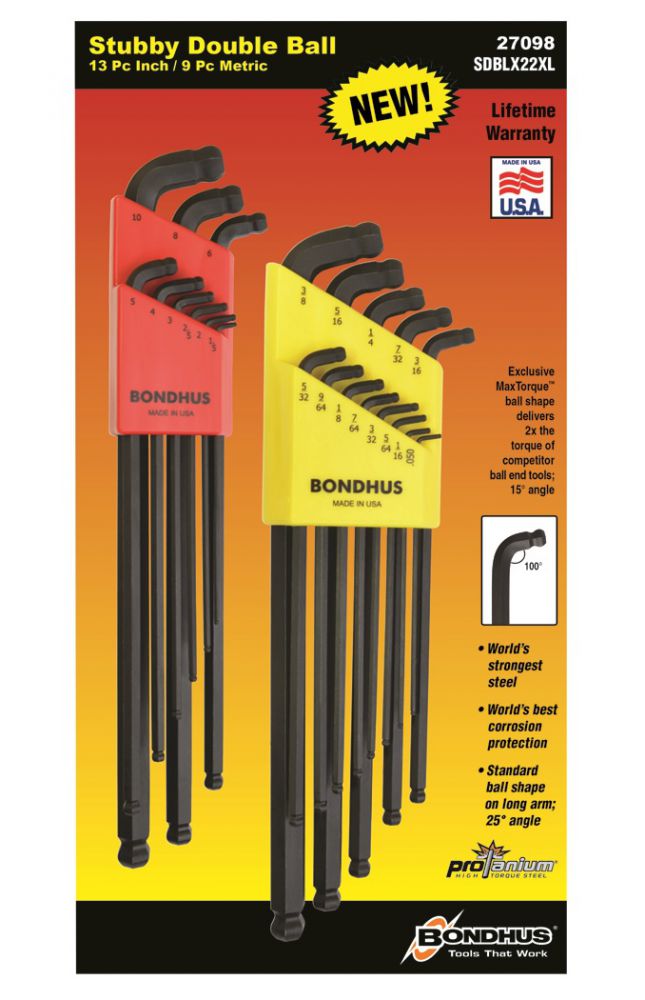 - BONDHUS SDBLX22XL Stubby Double BallEnd Key 22pcs Set, 27098 -