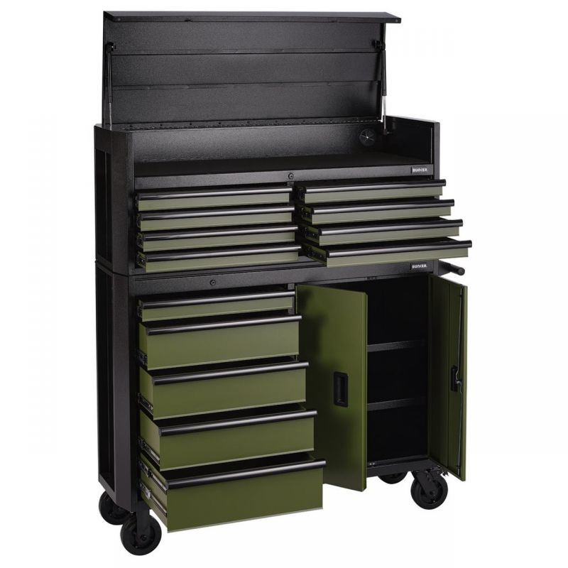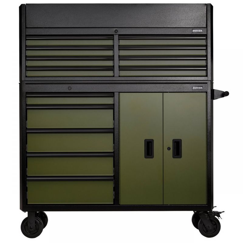- 1 x BUNKER® Combined Roller Cabinet and Tool Chest, 13 Drawer, 52", Green