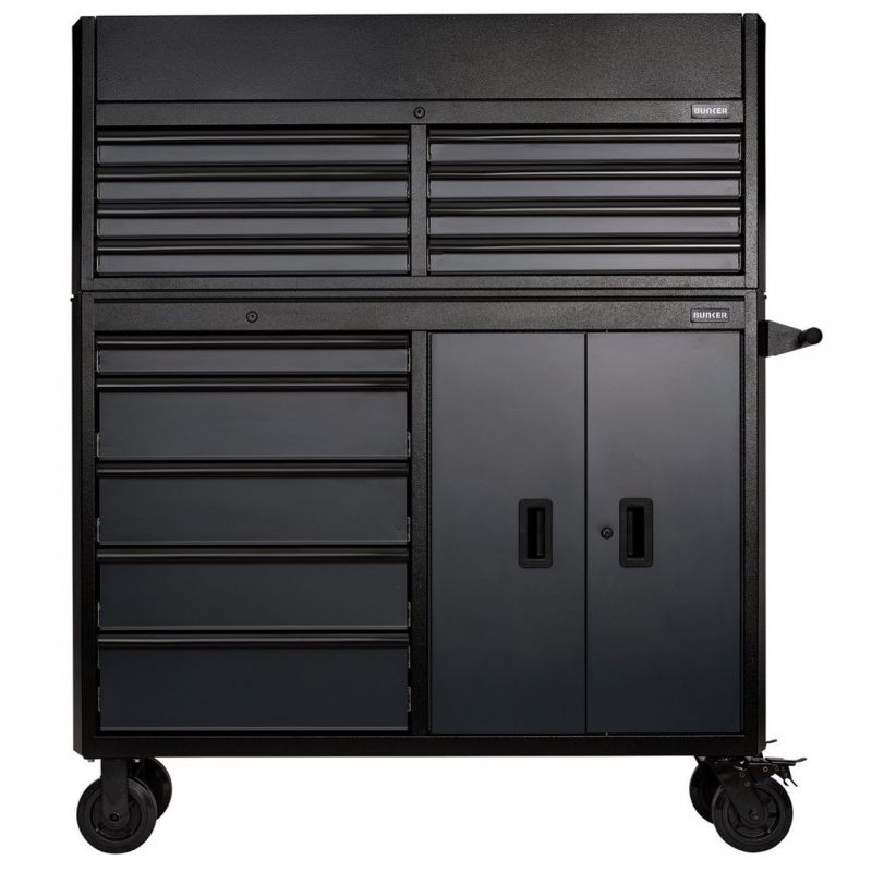 - 1 x BUNKER® Combined Roller Cabinet and Tool Chest, 13 Drawer, 52", Grey
