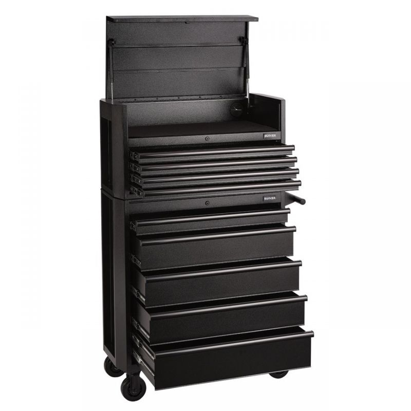 BUNKER Combined Roller Cabinet and Tool Chest, 9 Drawer, 36" Black - 24248