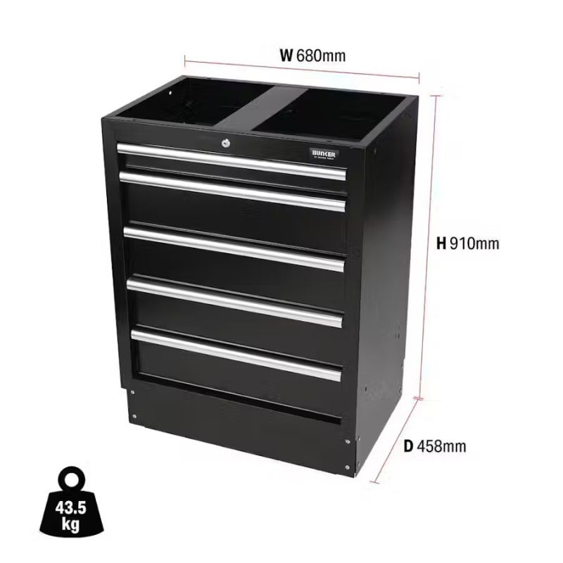 - 1 x BUNKER® Modular Floor Cabinet, 5 Drawer, 680mm