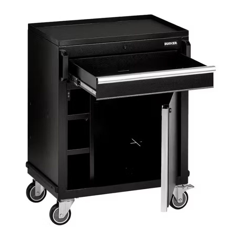 - The BUNKER® modular mobile cabinet is designed for easy and safe storage of all your power tools and equipment. Featuring two spacious drawers with foam lining, soft-close mechanisms, 1 door and a textured industrial-coated finish, this mobile cabinet is a practical solution for all of your storage needs.