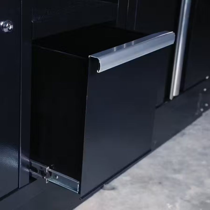 - The cabinet’s matt black textured finish is highly durable, thanks to the industrial powder coating that protects against scratches, wear and corrosion.