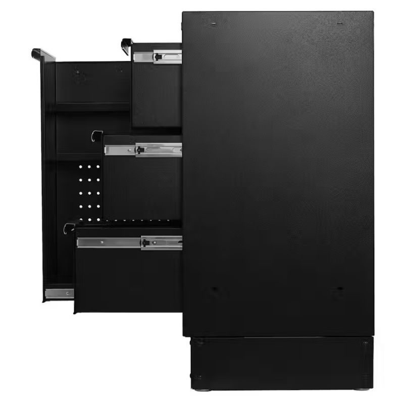 - The cabinet’s matt black textured finish is highly durable, thanks to the industrial powder coating that protects against scratches, wear and corrosion.