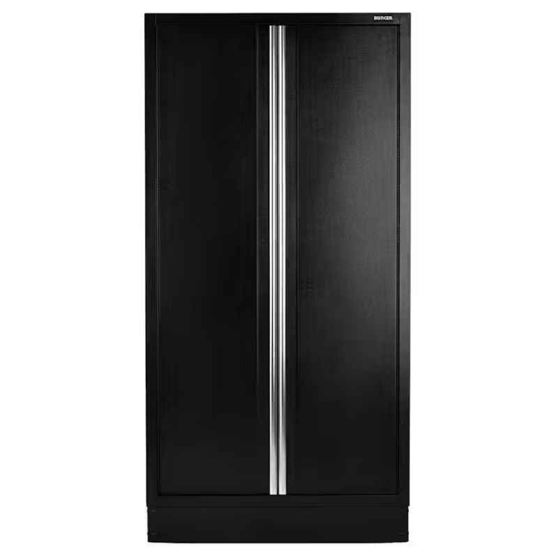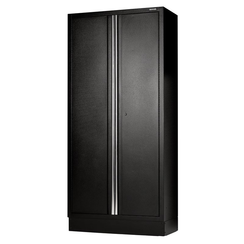 - If you're searching for the ideal storage solution for your workspace, the BUNKER® modular tall floor cabinet is the perfect choice. Standing at 2000mm, this tall cabinet features two spacious doors that provide ample storage and easy access to your tools and equipment. Finished in a premium matt black textured coating, it resists wear, scratches, and corrosion, ensuring long-lasting durability.