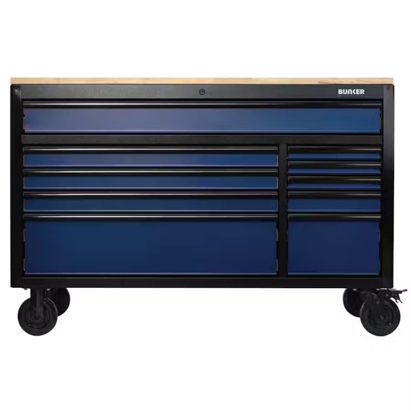 BUNKER Workbench Roller Tool Cabinet, 10 Drawer, 56" Blue