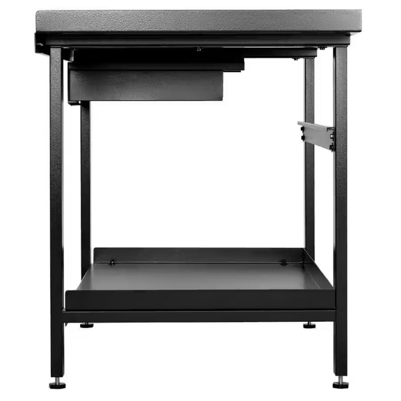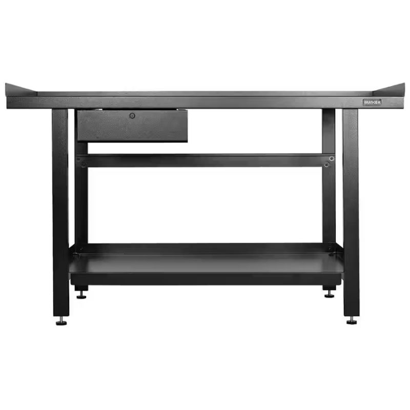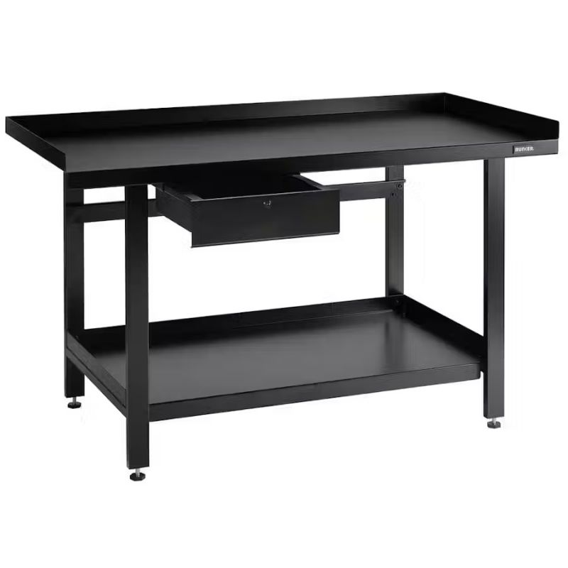 - This tough premium-quality steel workbench incorporates a worktop, storage shelf and drawer.