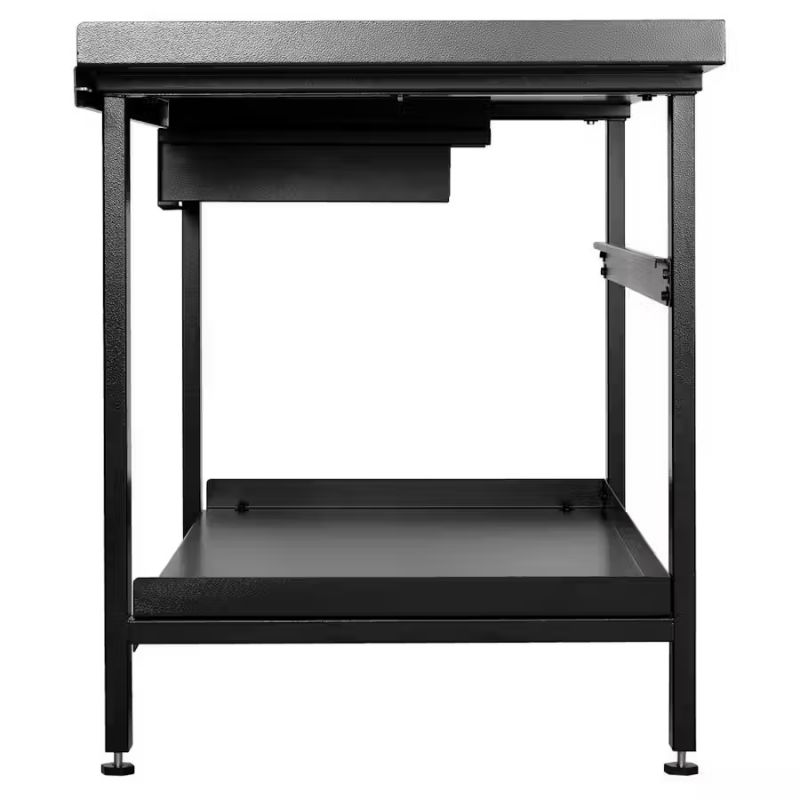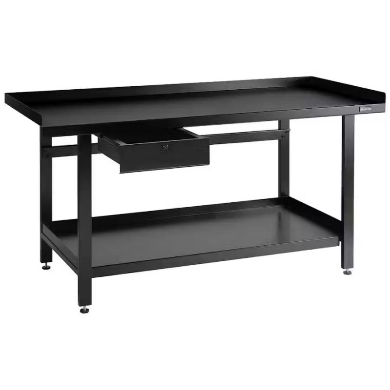 - This tough premium-quality steel workbench incorporates a worktop, storage shelf and drawer.