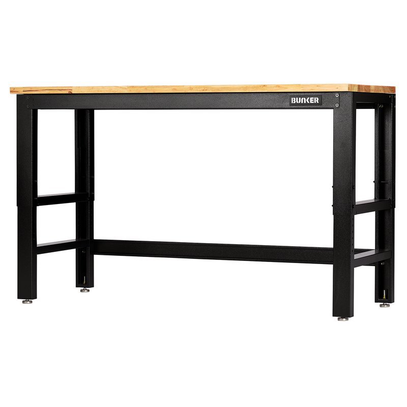- The BUNKER® workbench, measuring 1550mm, with hardwood worktop, the ideal companion for your garage or workshop.