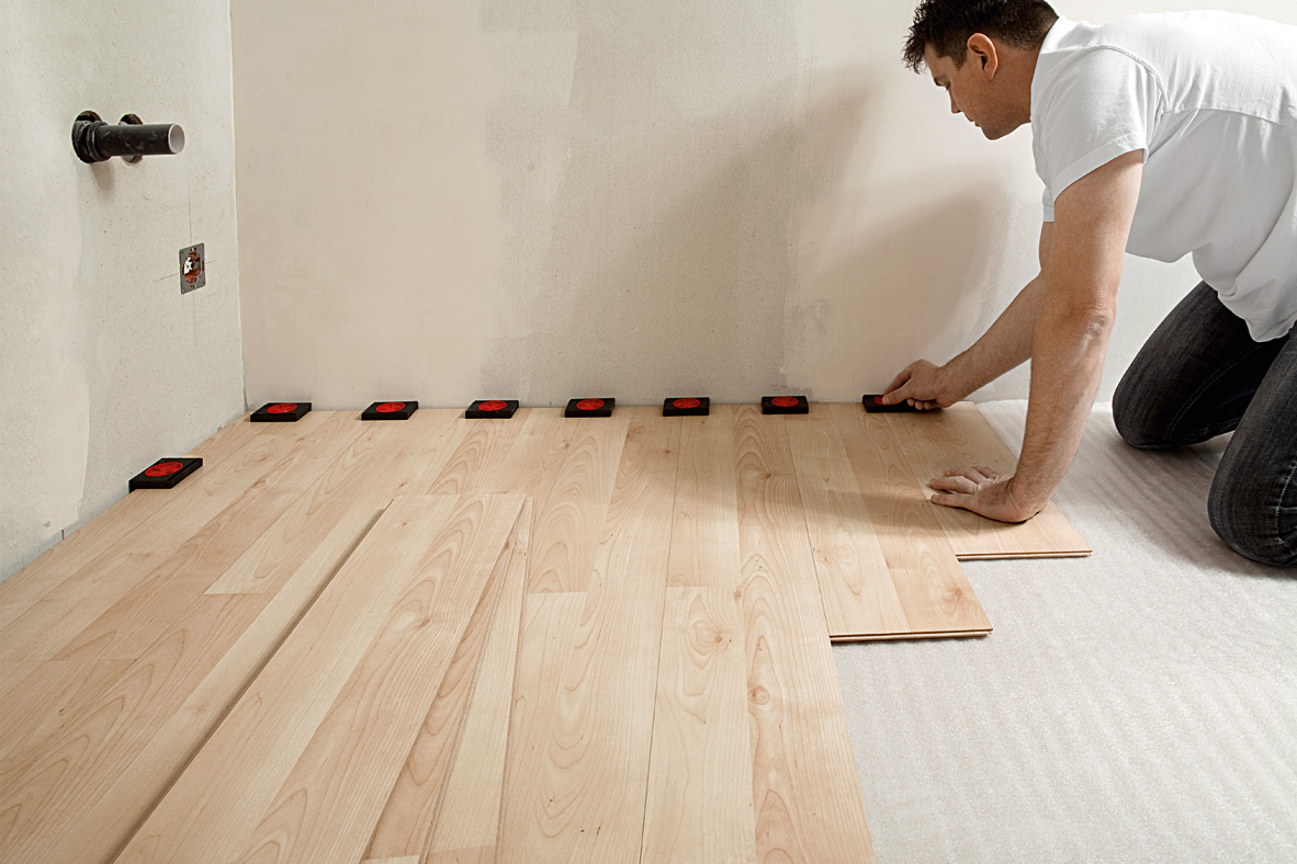 - Clever dial, Set up is fast and simple. Inserted between the wall and the first row of flooring, the distance to the wall can be set simply by turning the red dial. When the installation work is finished, the spacer is easy to remove; just rotate the dial to release the pressure.