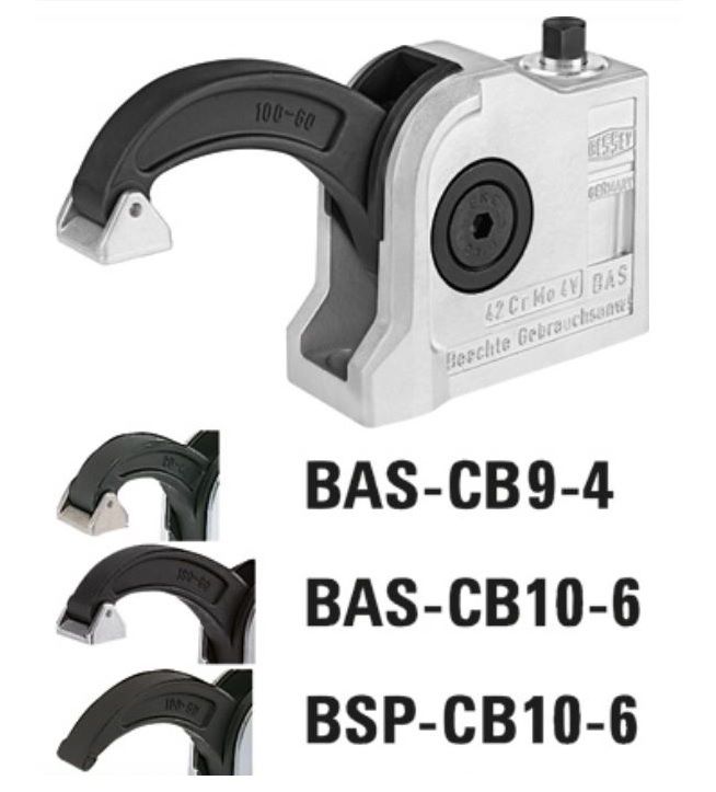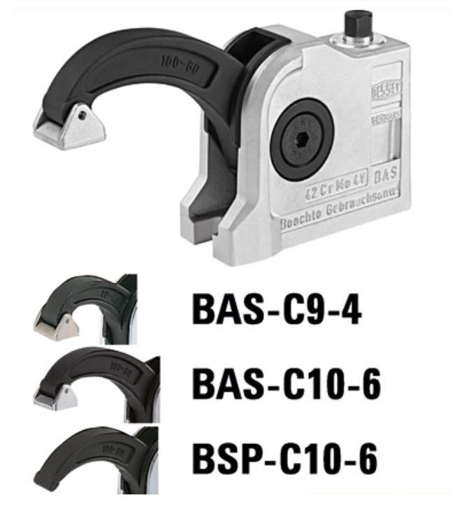 - Clamping arm variants with polyamide seal, To provide for gentle clamping with optimum weight distribution, the short and long clamping arms of the BAS models are equipped with a swivelling aluminium pressure shoe. And when clamping has to be done in corners, BSP models equipped with a pointed clamping arm are the perfect tools. A special polyamide seal protects the interior against dirt.