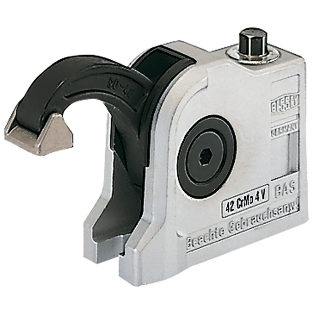 - Housings and clamping arms made from tempered stainless steel, BAS clamps are approx. 30 % smaller than comparable tools made by competitors and still provide the same high clamping forces. At a perpendicular to the jaw face, the self-locking worm gear unit exerts up to 16,000 N.