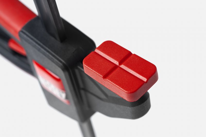 - due to the high quality 2-part plastic grip with pump lever behind the rail for safe access from both directions due to the release handle integrated in the grip for quick adjustment of the sliding bar and for releasing the clamp due to the cross prism integrated in the plastic protective caps for the secure fastening of round, pointed and angular pieces