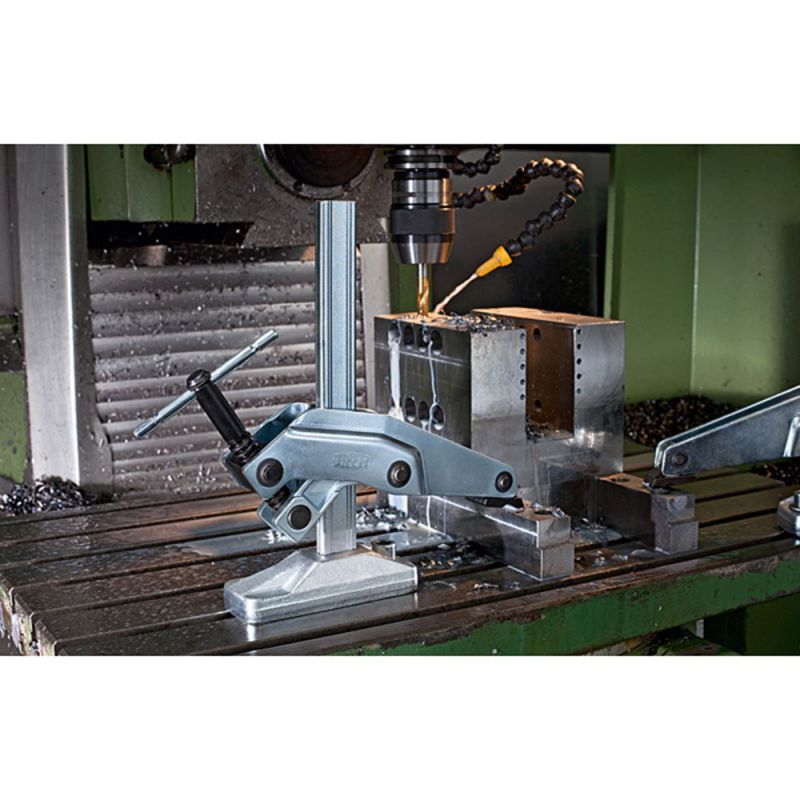 - Externally-positioned spindle to allow unobstructed access to the work area and clamping in confined spaces.