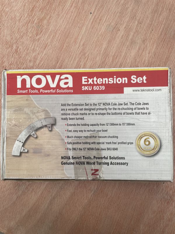 - NOVA 6039 Cole Jaw extension accessory adds a potential extra 75mm (3") in diameter to the NOVA 6040 Large Cole Jaw set. Designed specifically for 6040, it takes your 305mm (12") diameter up to 380mm (15") diameter. These are die-cast aluminium for durability and long life with pre-set holes for the rubber bumpers. It comes in four jaw segments which bolt onto the 6040 quadrants.