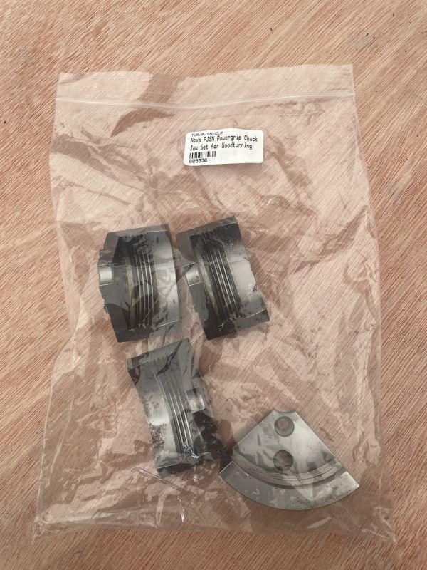 The NOVA PJSN chuck jaws are the most powerful jaw available for large spigot/hollow form turning on the SuperNOVA2. (This jaw is suitable for the SuperNOVA2 chuck, but not recommended for use with the NOVA G3). There is tremendous holding power both externally and internally. The jaws are ideal for turning green wood.The top of the jaw offers a dovetail grip both internally and externally for bowl or platter work. It is in the depth combined with NOVA’s PowerGrip internal design where this jaw comes into its own. The jaws offer a rock solid grip on spigots when turning large hollow forms or even green timber, which is initially out of balance.Fitted to the SuperNOVA2, the jaw expands into a recess between 95mm and 116mm diameter. When gripping a spigot the range is 77mm to 98mm diameter. These jaws will also hold square stock between 55mm and 76mm.