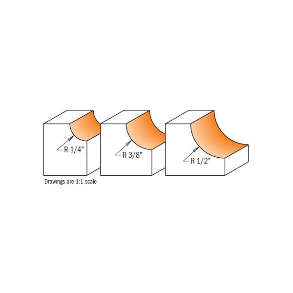 - Each of these sets includes carbide cove bits in three of the most commonly-used sizes. You will get 6.35mm (1/4”), 9.5mm (3/8”) and 12.7mm (1/2”) radius bits.