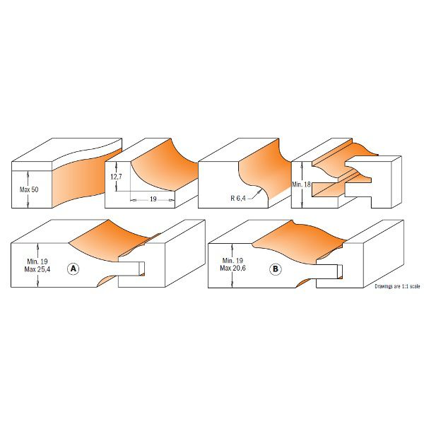 - RAISED PANEL BIT WITH BACKCUTTER: this 88.9mm (3-1/2") diametre bit features a backcutter for milling both the front and the back on the panel in a single cut. We recommend using a 31.7mm (1-1/4") diametre bearing to work safely in two shallow passes.