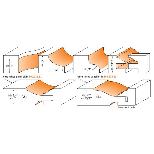 - Available with raised panel bits in two different profiles, these sets feature six router bits for making arched raised panel doors and professional drawer fronts. These sets include: