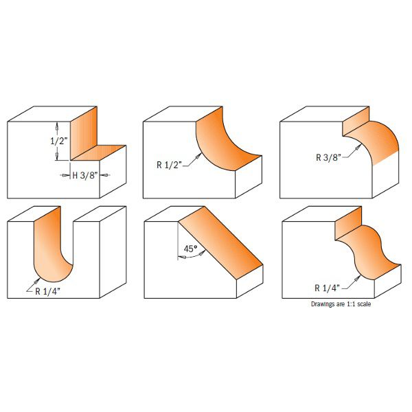 - Containing 6 of CMT’s most frequently used 12.7mm (1/2") shank router bits, this compact Italian case is beautiful and convenient for your woodworking needs. All the bits contained feature the finest steel and carbide, plus CMT’s baked-on orange PTFE non-stick coating.