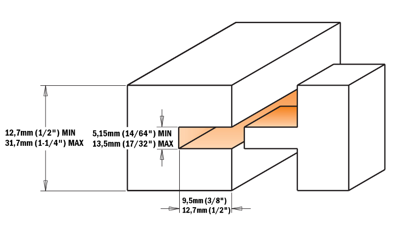 - For groove width from 5mm (13/64”) to 13.5mm (17/32”).