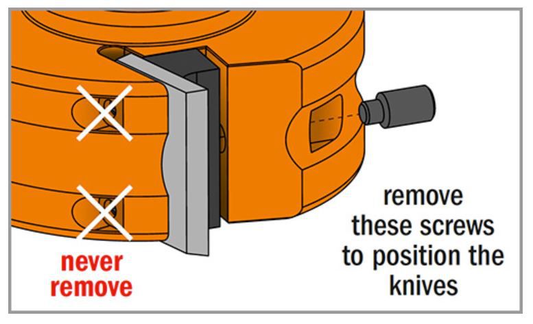 - Possibility to use knives with a height of 40mm (1-37/64") or 50mm (1-31/32") (order no. 690) and limiters (order no. 691).
