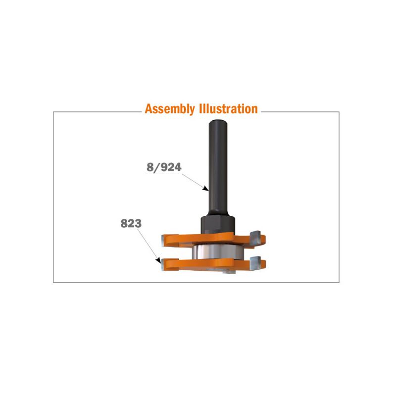 CMT Arbor 924 - for Slot Cutter 823 - Without Bearing, Without Stop Collar, 8mm shank