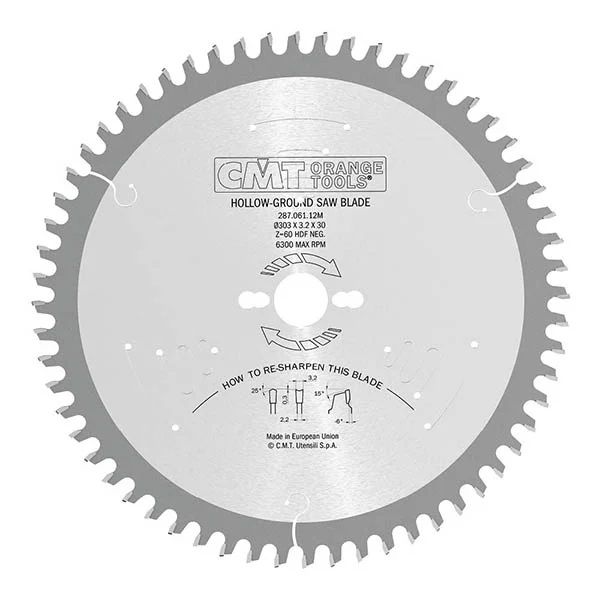 CMT Fine Finishing Saw Blade - Two Sided Melamine 220mm dia x 3.2 kerf x 30 bore Z42 HDF Neg