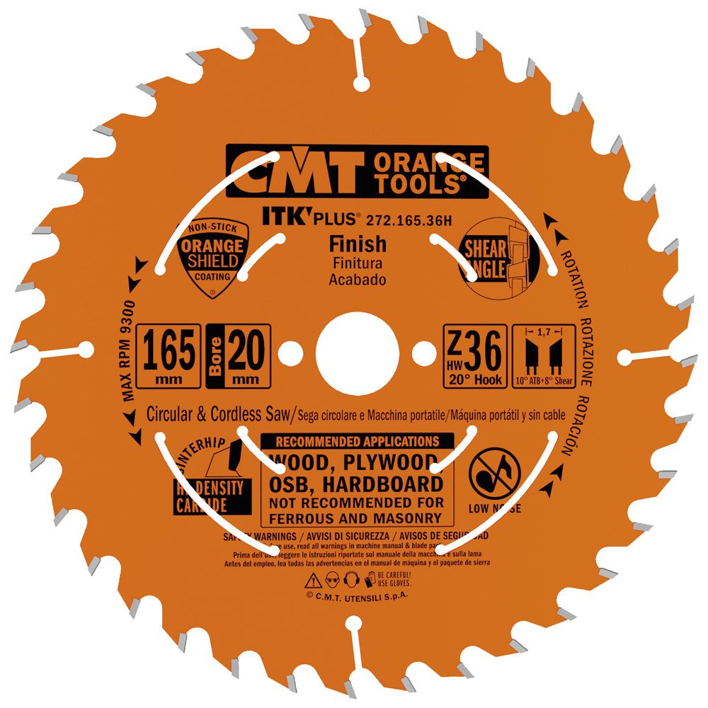 CMT ITK Plus Finishing Saw Blade - 160mm dia x 1.7 kerf x 20(+16) bore Z40 10° ATB+8° SHEAR