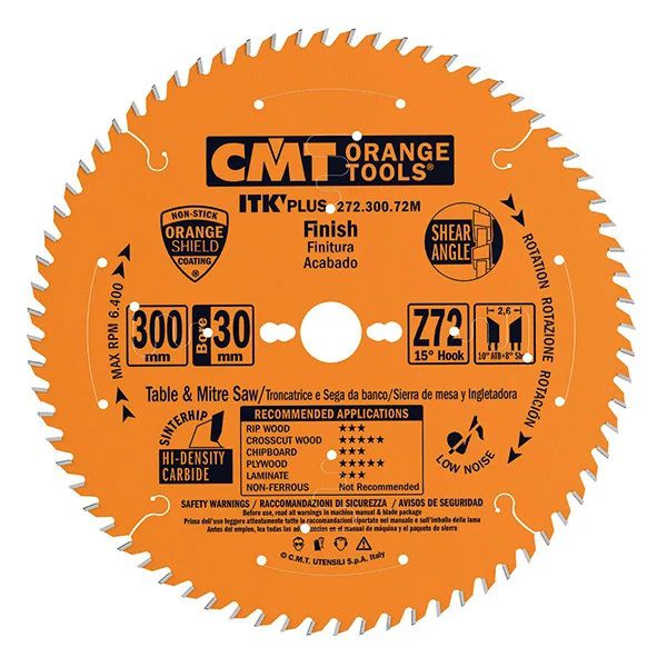 CMT ITK Plus Finishing Saw Blade - 250mm dia x 2.4 kerf x 30 bore Z60 10° ATB+8° SHEAR