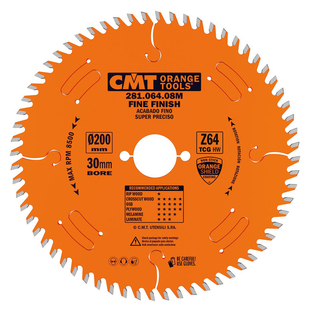 CMT Industrial Finish Saw Blade - Laminated POS 200mm dia x 3.2 kerf x 30 bore Z64 TCG