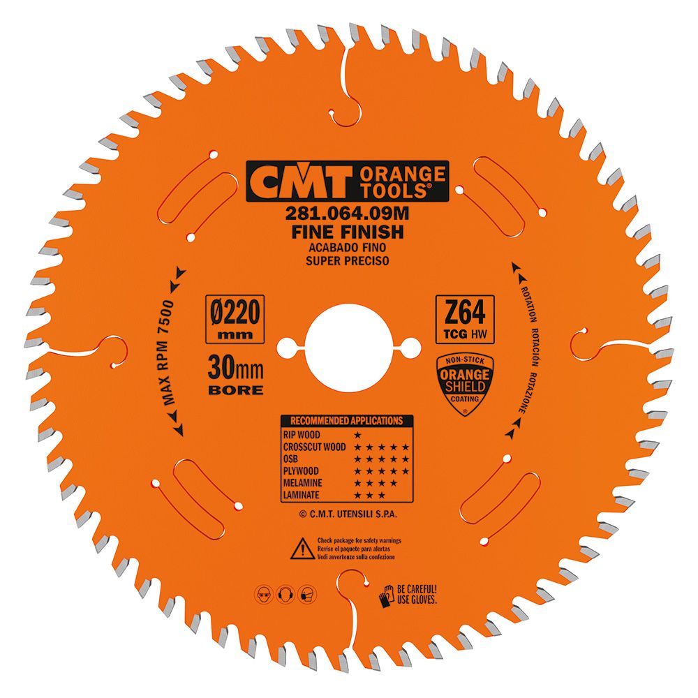 CMT Industrial Finish Saw Blade - Laminated POS 220mm dia x 3.2 kerf x 30 bore Z64 TCG