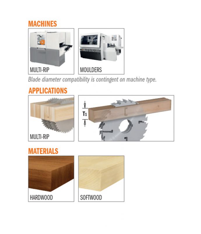 CMT Industrial Multi-Rip Blade with Rakers - Wood - 180mm dia x 2.5 kerf x 40 bore Z21 Flat