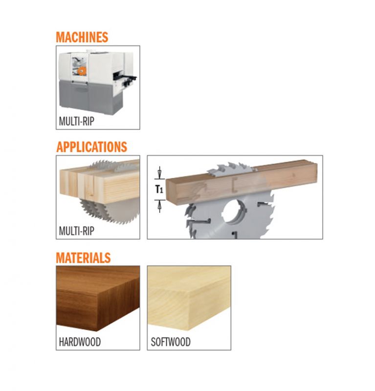 - Mounted on the sides of gang rip saws, these act as shoulder saw blades and help ensure stability and reduce vibrations under extreme work loads.