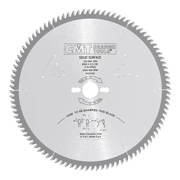 CMT Industrial Solid Surface Saw Blade 300mm dia x 3.2 kerf x 30 bore Z84 MTCG