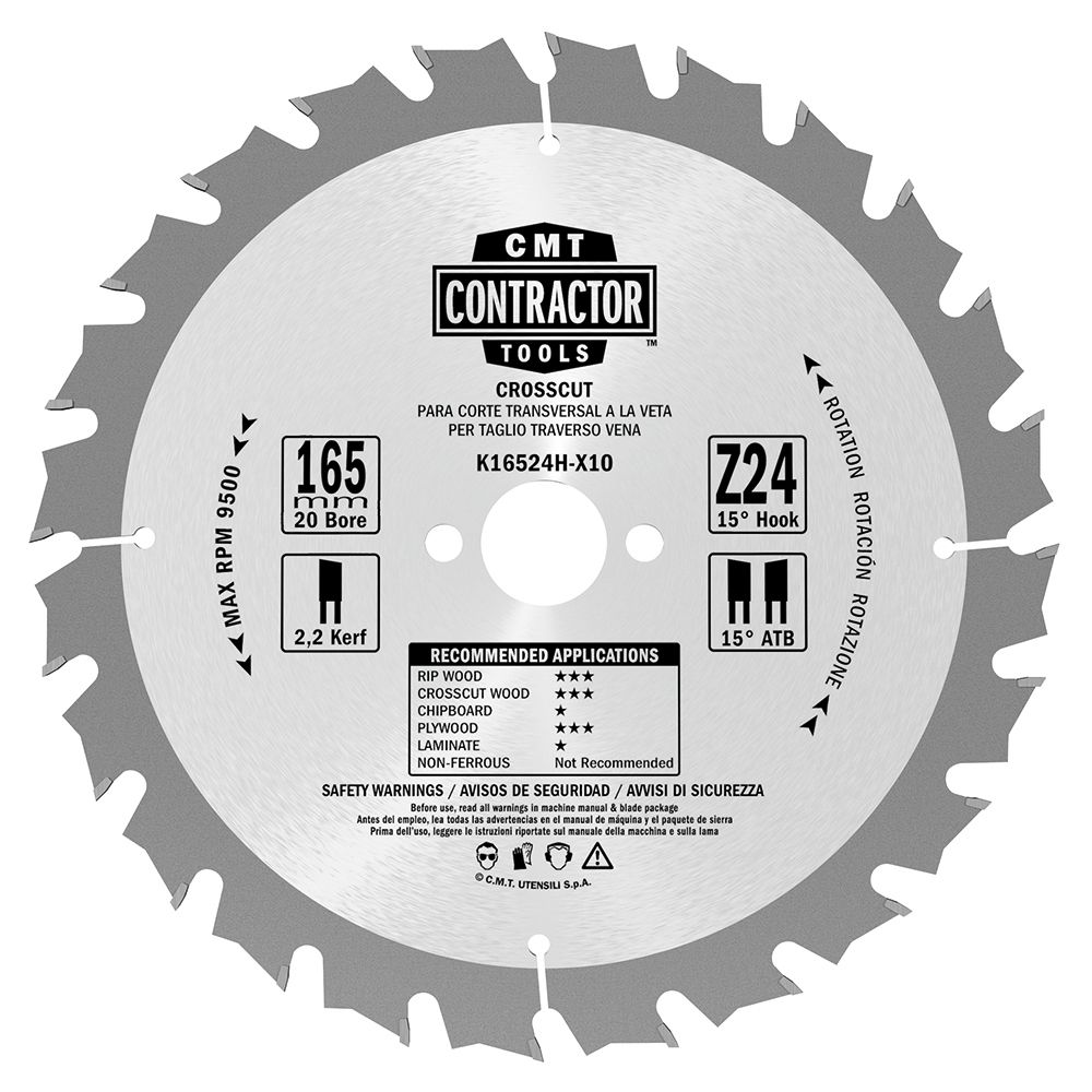 CMT K Contractor General Purpose Saw Blade - 165mm dia x 1.7 kerf x 20 bore Z24 15°ATB